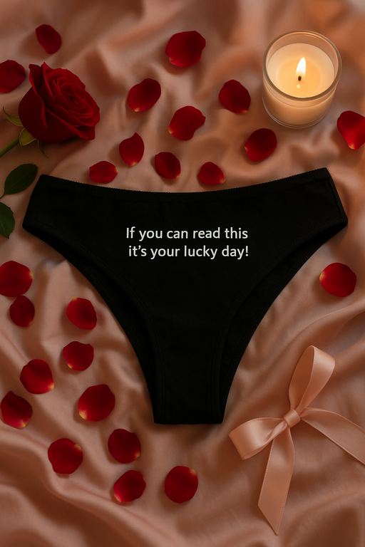Quando lo leggi, è già troppo tardi… per trattenere il sorriso! 😉 Mutandine nere con messaggio chiarissimo: If you can read this it’s your lucky day! Perfette per coppie che adorano la romanticheria birichina. 🔥