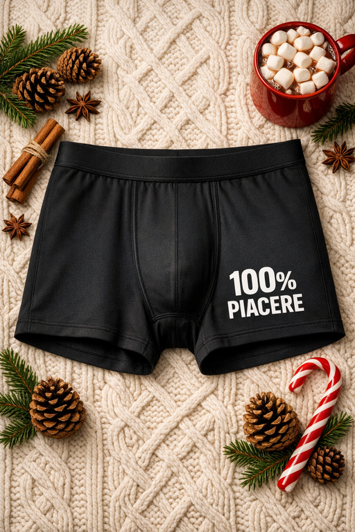 Minimal fuori, sfacciata al punto giusto: i boxer neri con stampa bianca 100% PIACERE sulla gamba destra sono la battuta perfetta da indossare, per sentirti sicuro e far partire il sorriso.