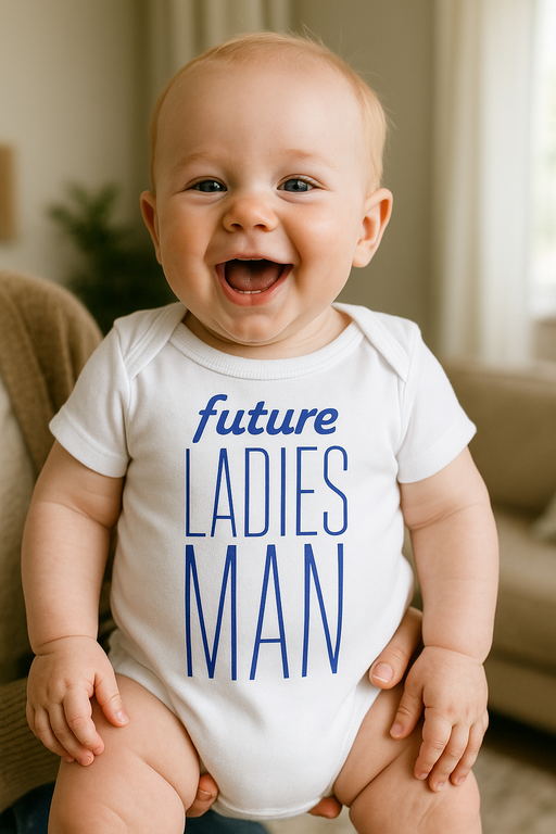 Allacciate le cinture, arriva il mini conquistatore! 😎 Il body con la scritta "future LADIES MAN" sta già scrivendo la storia d’amore del tuo bebè.
