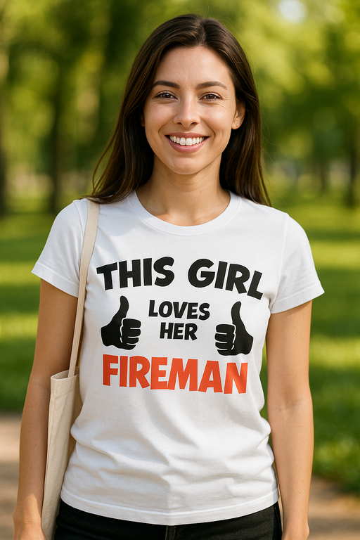 🔥 Sirene in lontananza, cuore che batte: questa maglietta dice chiaro e tondo: THIS GIRL LOVES HER FIREMAN! 🚒