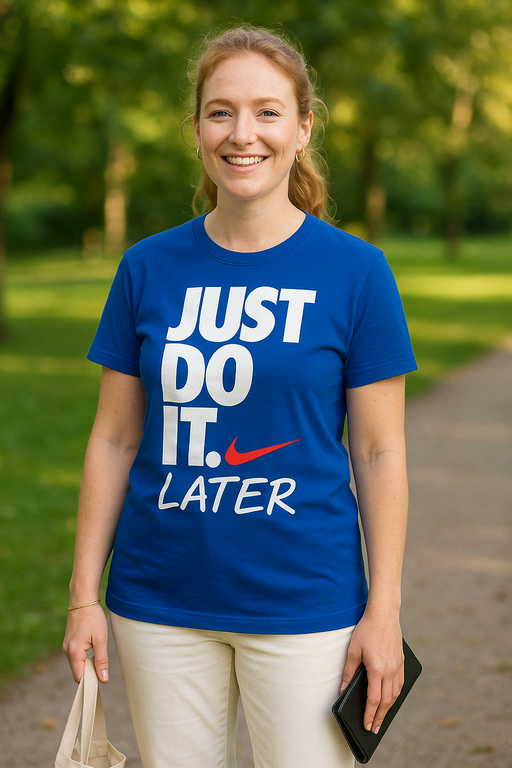 😴 Motivazione in pausa? Indossa JUST DO IT. LATER e il mondo capirà. Per chi ha piani — solo non oggi.