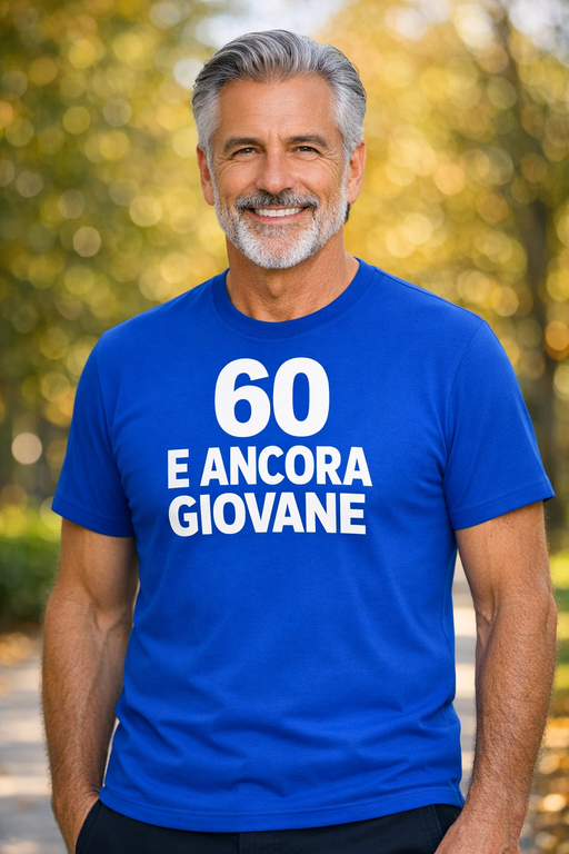 Con la scritta 60 E ANCORA GIOVANE celebri i 60 con stile e autoironia: un messaggio chiaro, simpatico e super d’impatto per chi si sente giovane dentro (e anche fuori).
