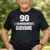 60 E COME UN RAGAZZINO: una frase che fa sorridere e mette subito l’atmosfera giusta. Il blu royal e la stampa bianca danno un look deciso, ideale per entrare alla festa da vera leggenda.