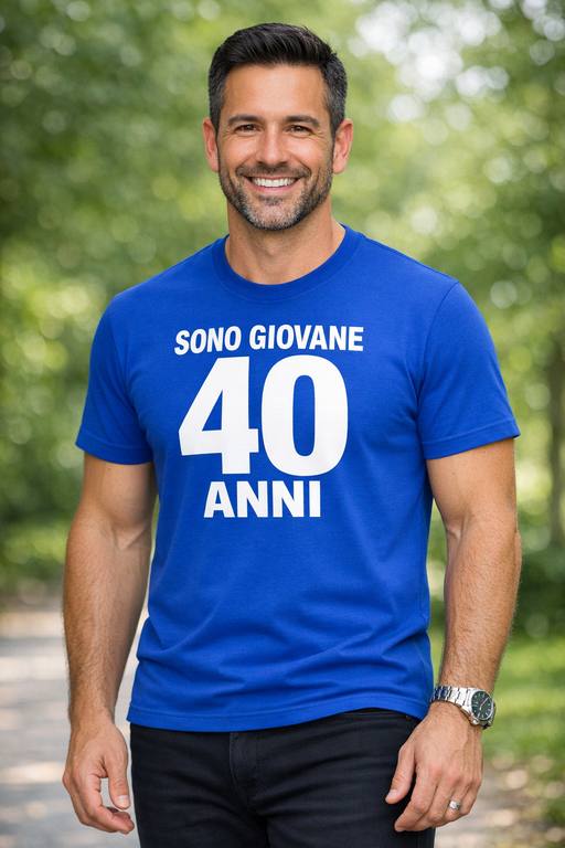 Una frase che parla da sola: SONO GIOVANE 40 ANNI. Perfetta per sdrammatizzare, attirare sorrisi e ricordare che i 40 sono solo un nuovo livello.