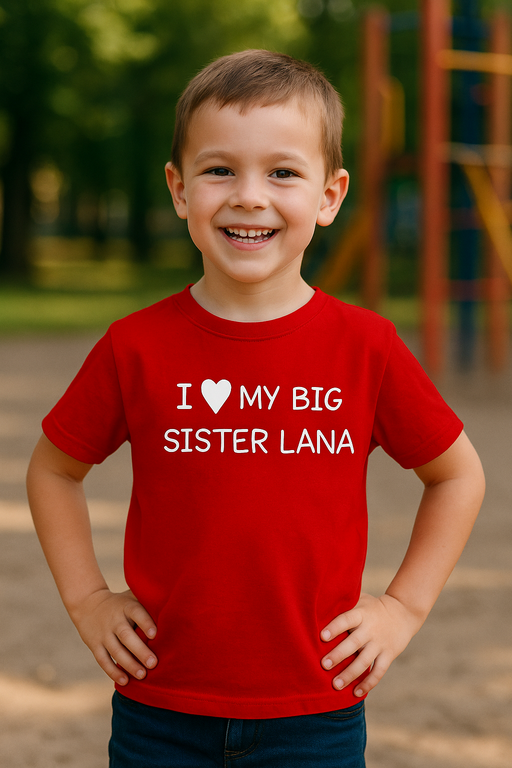 Questa maglietta per bambini è come un megafono dell’amore tra sorelle: piccola maglia, grande messaggio. Quando il piccolo eroe la indossa, il legame si trasforma in un duo imbattibile: all’asilo status da VIP, a casa abbracci extra e magari persino l’ultimo biscotto. Nome personalizzabile per renderla davvero unica.
